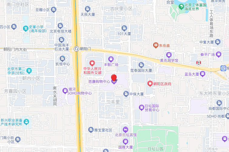 項(xiàng)目地處北京傳統(tǒng)朝陽門商圈核心,北京東二環(huán)朝陽門橋東南外交部、司法部的東側(cè),悠唐國際中心是悠唐綜合體當(dāng)中寫字樓部分,位于悠唐綜合體的東南角,東側(cè)緊鄰朝外市場街,向北直行可至工體北路,并快速抵達(dá)北京知名的休閑消費(fèi)娛樂中心三里屯酒吧一條街及工人體育場,方便您充分享受區(qū)域內(nèi)豐富多彩的涉外生活氛圍;南向直行可抵達(dá)北京室內(nèi)氧吧日壇公園,以及北京的第一使館區(qū);北側(cè)朝陽門內(nèi)外大街,快速抵達(dá)王府井商圈及國貿(mào)商圈,交通發(fā)達(dá)便利,連接?xùn)|西。東向與CBD核心區(qū)地標(biāo)性建筑國貿(mào)三期、央視近在咫尺。項(xiàng)目除自身配套的五星級(jí)酒店及商場、公寓外,豐聯(lián)廣場、人壽大廈、昆泰國際等高端商務(wù)辦公環(huán)布周邊,朝外MEN雅寶商城、老番街、日壇國際貿(mào)易中心云集于此,商務(wù)及商業(yè)氛圍濃厚,投資、增值價(jià)值不言而喻,是目前北京成熟的商圈核心要地。